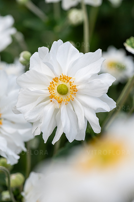 Zawilce zakwitają późnym latem i cieszą oko do pierwszychprzymrozków. ‘Whirlwind’ to jedna z piękniejszych białychodmian. Półpełne duże kwiaty z żółtym środkiem robiąogromne wrażenie. Dobry zwarty pokrój, starsze pędy niepokładają się. Lubi cień lub półcień również słońce podwarunkiem że ziemia będzie wilgotna. W pierwszym rokupo posadzeniu może przemarzać, zalecane przykrycie.Idealna jako tło dla innych roślin bądź jakogrupa ogrodowa.